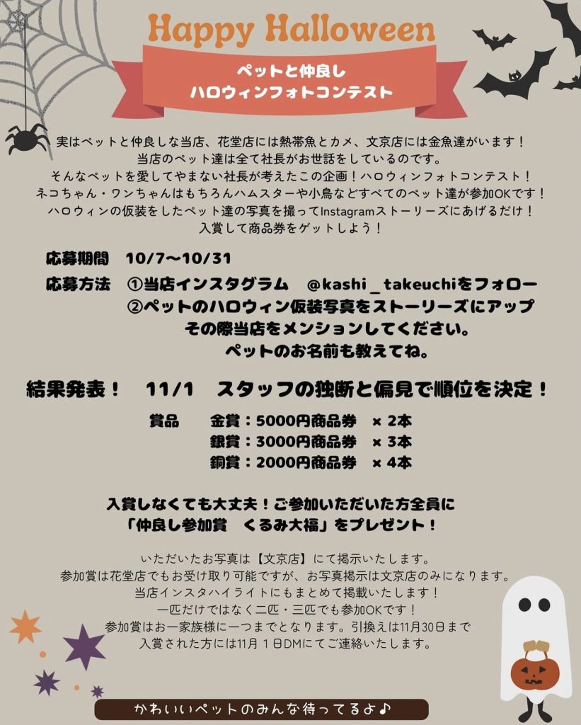 基本的に私が管理しているのですが、そんなペット好きが高じてハロウィンフォトコンテストを開催します!!