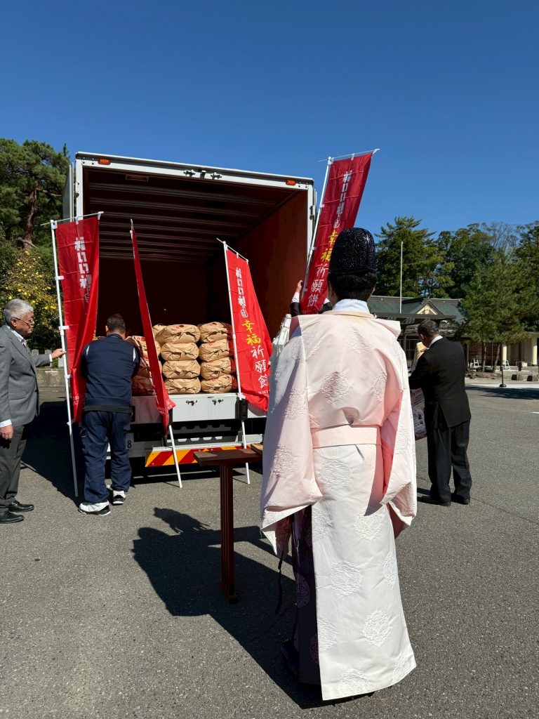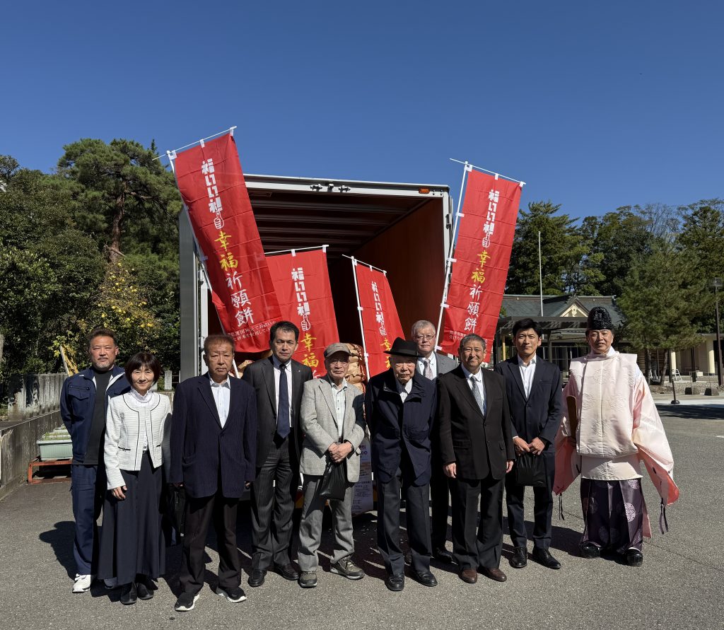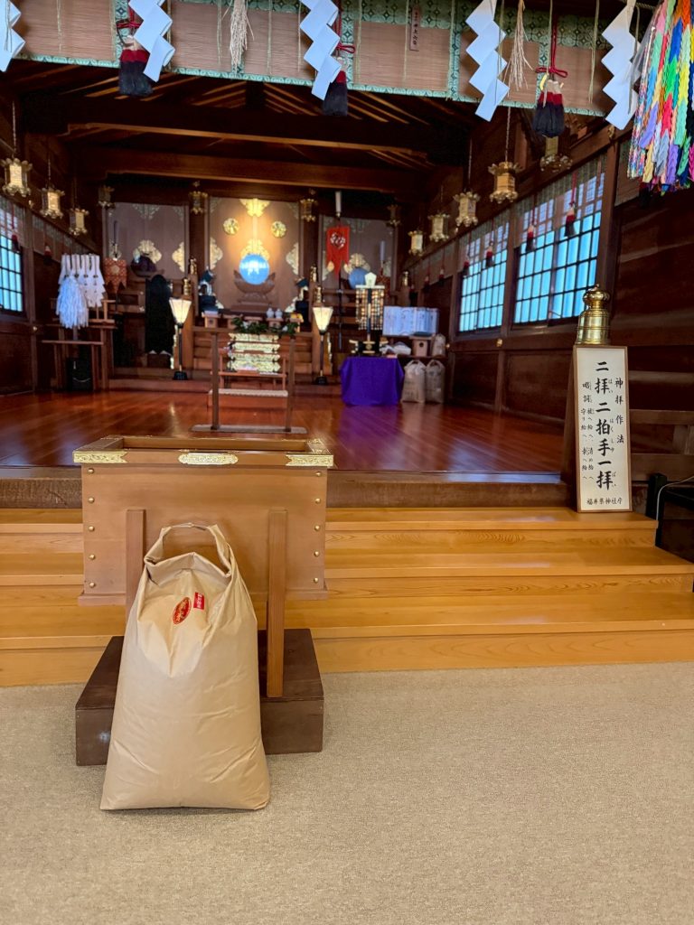 今年も新米の収穫が始まり、いつもお世話になっている餅組合のメンバーでお米のご祈祷に行ってきました。