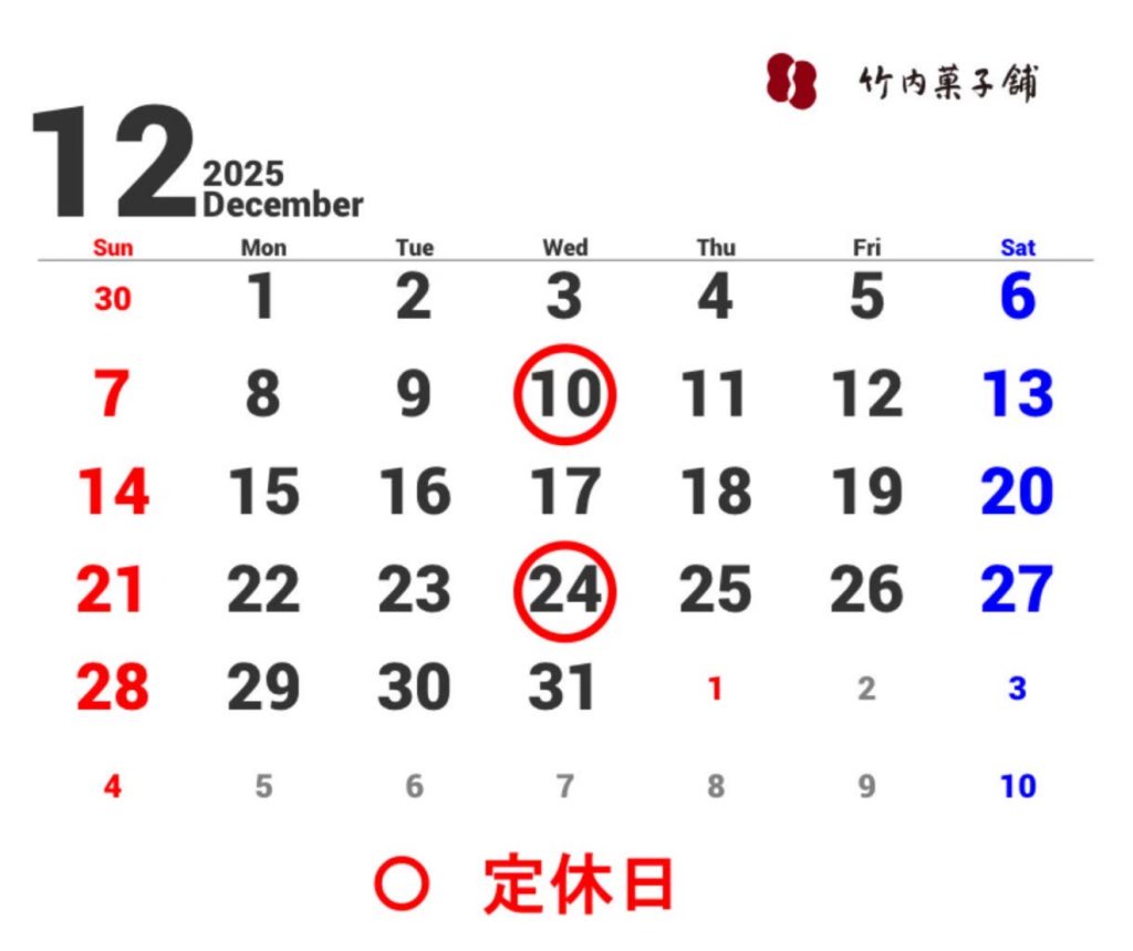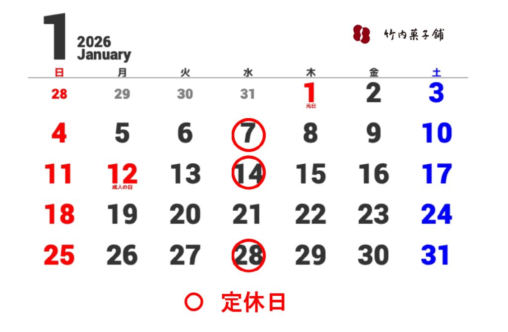 年末年始はそのまま元旦も休まず営業させていただき、その代わり1月は7日、14日、28日とお休みをいただきます。