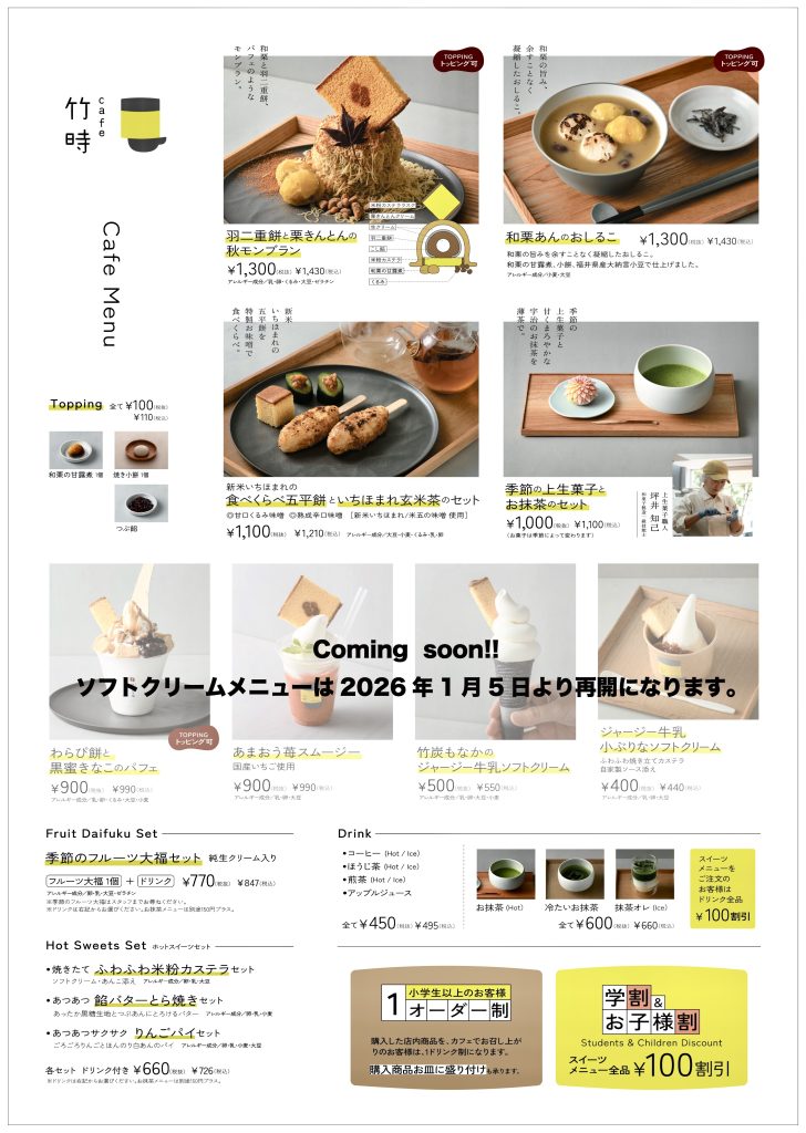 1月5日からはソフトクリームメニューも再開し、グランドメニューも切り替わりますので