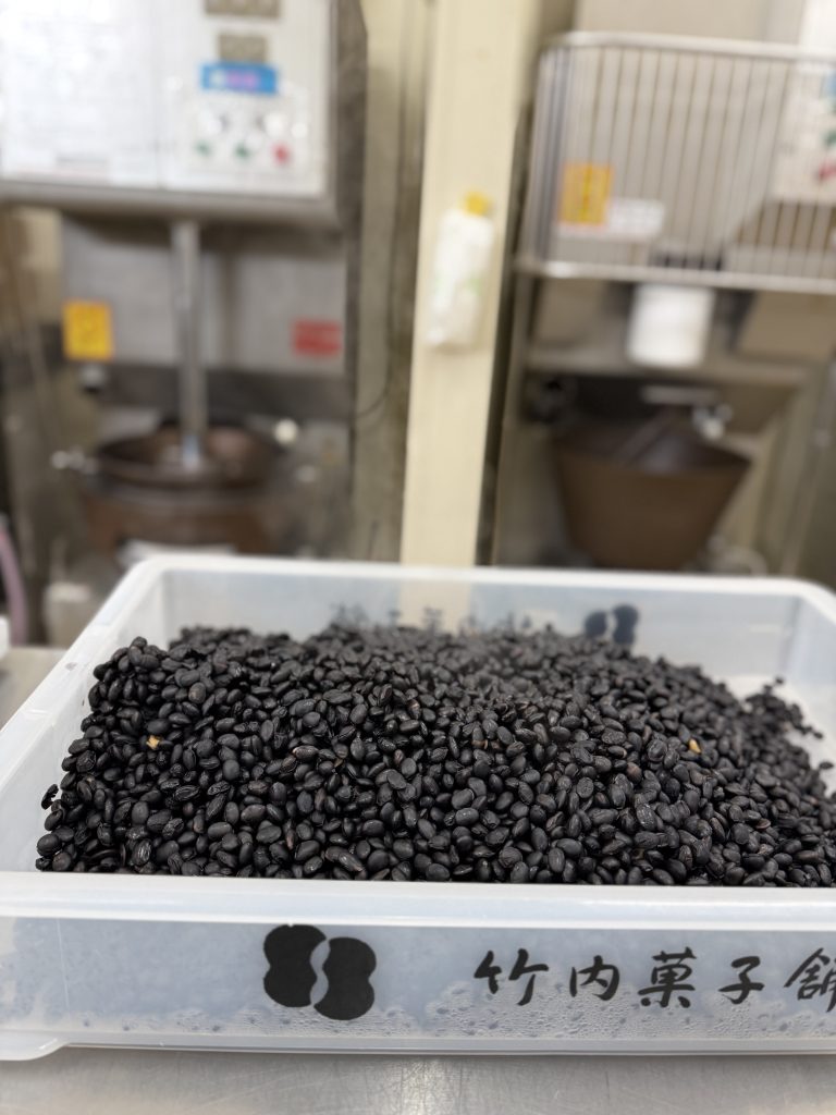 北海道産の大粒黒豆を福井県産のもち米で作ったもっちりお餅にたっぷりと混ぜ込み、自慢の自家製小豆のこし餡を包みました!!